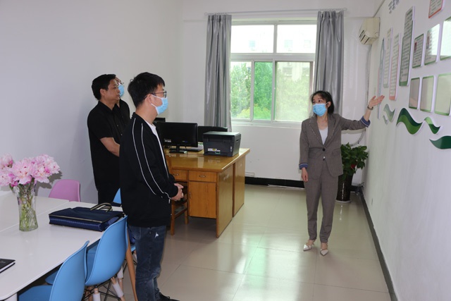 考核组首先到活动室查看工作室环境及硬件设施,王焕霞老师及工作室核心成员向考核组介绍活动室的建设与使用情况。