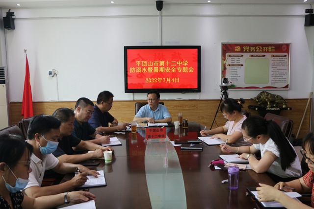 暑假即将开始,为了增强师生们的安全意识,度过一个平安、健康、有意义的暑假生活,7月4日上午,市十二中组织召开了2022年暑假防溺水暨安全工作专题会议,全校中层干部参加。