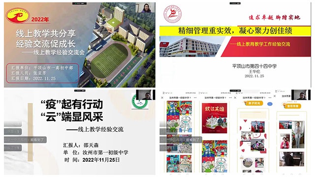 观看了来自平顶山市一高初中部张亚芳副校长的《线上教学共分分享 经验交流促成长》;平顶山市三六联校娄昆佑副校长的《线上教学经验交流会》;平顶山市第四十四中学王华伦副校长的《精细管理重实效,凝心聚力创佳绩》;汝州市第一初级中学邵天森副校长的《“疫”起有行动 “云”端显风采》等9位教育同仁分别做了线上经验交流。