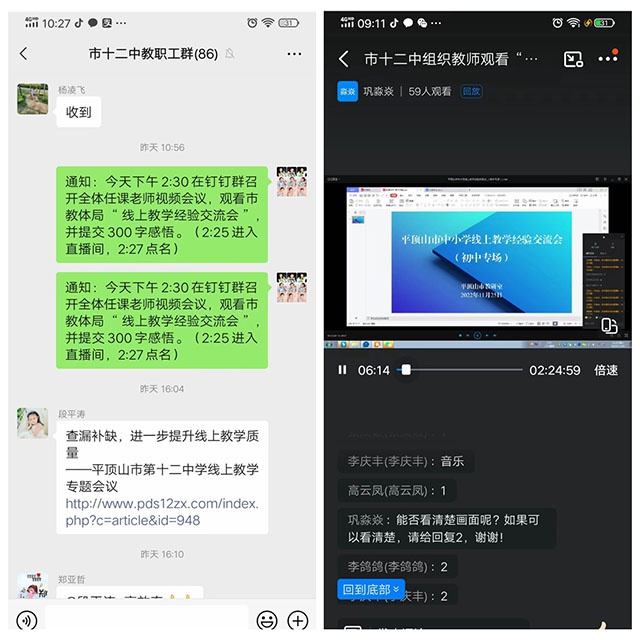 由于部分教师周五(11月25日)上课,没能全程参加视频会。11月26日下午2:30,教科室组织没能参加会议的老师收看视频回放。