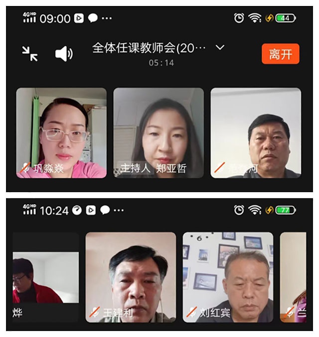 老师们认真、准时进入进入直播间观看视频会。
