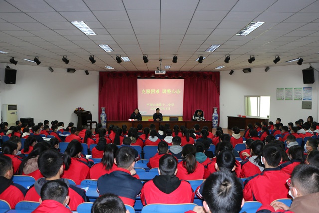 2月14日,市十二中举行“克服困难,调整心态” 八年级学生考后学习指导活动。校长范登河、副校长郭军,八年级部主任付延军以及全体八年级班主任参加,会议由付延军主持。
