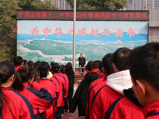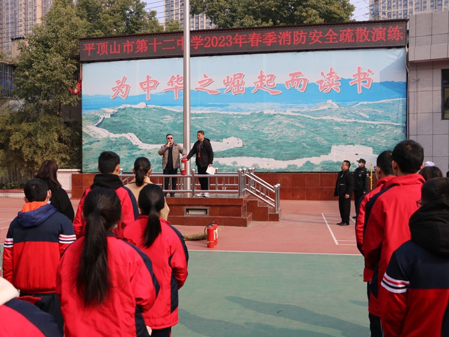 为使广大师生更深入地了解消防常识,强化安全防范意识,最大限度地保护广大师生的人身安全,市十二中开展了2023年春季消防安全疏散演练活动。
