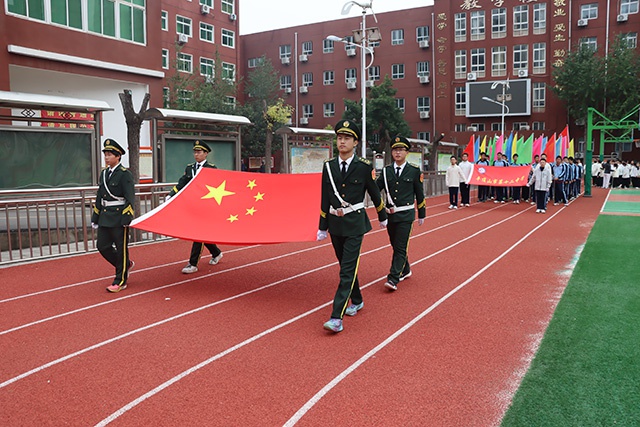 入场仪式结束后,全体师生肃立,升国旗、奏唱国歌。嘹亮的歌声回荡在校园上空,爱国之情在每个人心中激荡,汇聚成昂扬向上的力量。