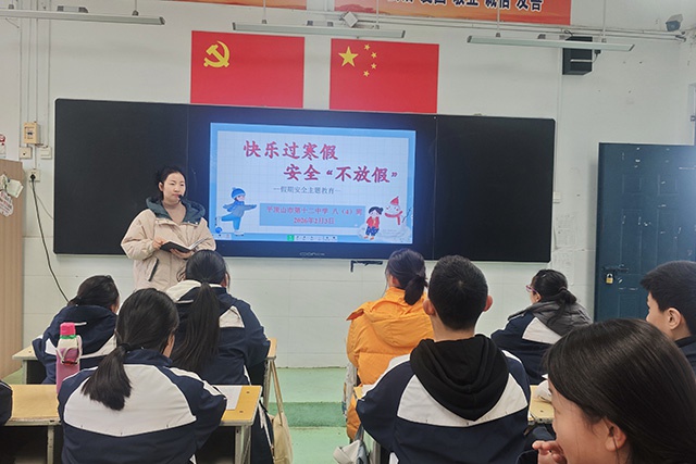 岁末寒冬至,寒假序幕启。为切实保障学生度过一个“安全、健康、快乐、充实”的假期,2026年2月3日,平顶山市第十二中学以班级为单位,集中开展寒假安全教育主题活动,为全体学生筑牢假期安全防线。