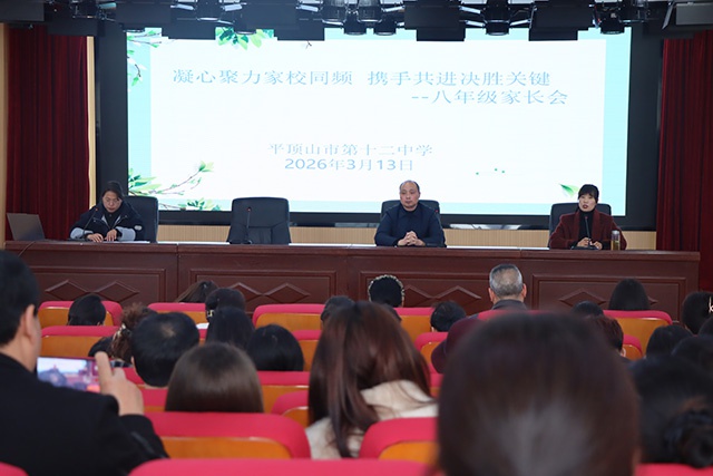 3 月 13 日,平顶山市第十二中学召开七、八年级春季学期家长会,家长齐聚校园,与学校携手同心、共话成长,为孩子们的发展之路凝聚家校合力,此次会议结合两个年级的学段特点,分别采取不同形式开展。