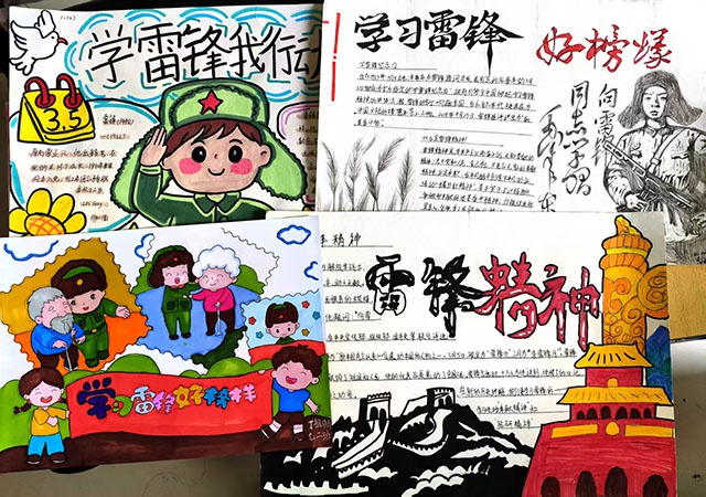 学校广泛开展学雷锋系列比赛活动,同学们通过书画创作、手抄报设计、征文撰写等多种形式,抒发对雷锋同志的崇敬之情,诠释对雷锋精神的独特理解。以笔墨传情,以声音献礼,让雷锋精神根植于心,进一步厚植校园红色文化底蕴。