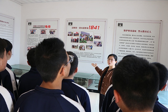 现场氛围庄严肃穆,主持人孙凯伦宣布祭扫仪式正式开始。他详细介绍了此次祭扫活动的深刻意义,带领大家重温黄山寨惨案的悲壮历史,让在场师生在回望历史中感悟先辈们的不屈风骨,铭记民族苦难,传承先烈精神。